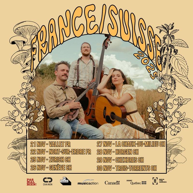 " Le groupe québécois propose un parfait mélange d’influences, accordant habilement country, folk et bluegrass, et navigue à merveille entre la simplicité du vieux country et la virtuosité du bluegrass, offrant des mélodies riches rehaussées par un travail harmonique raffiné."